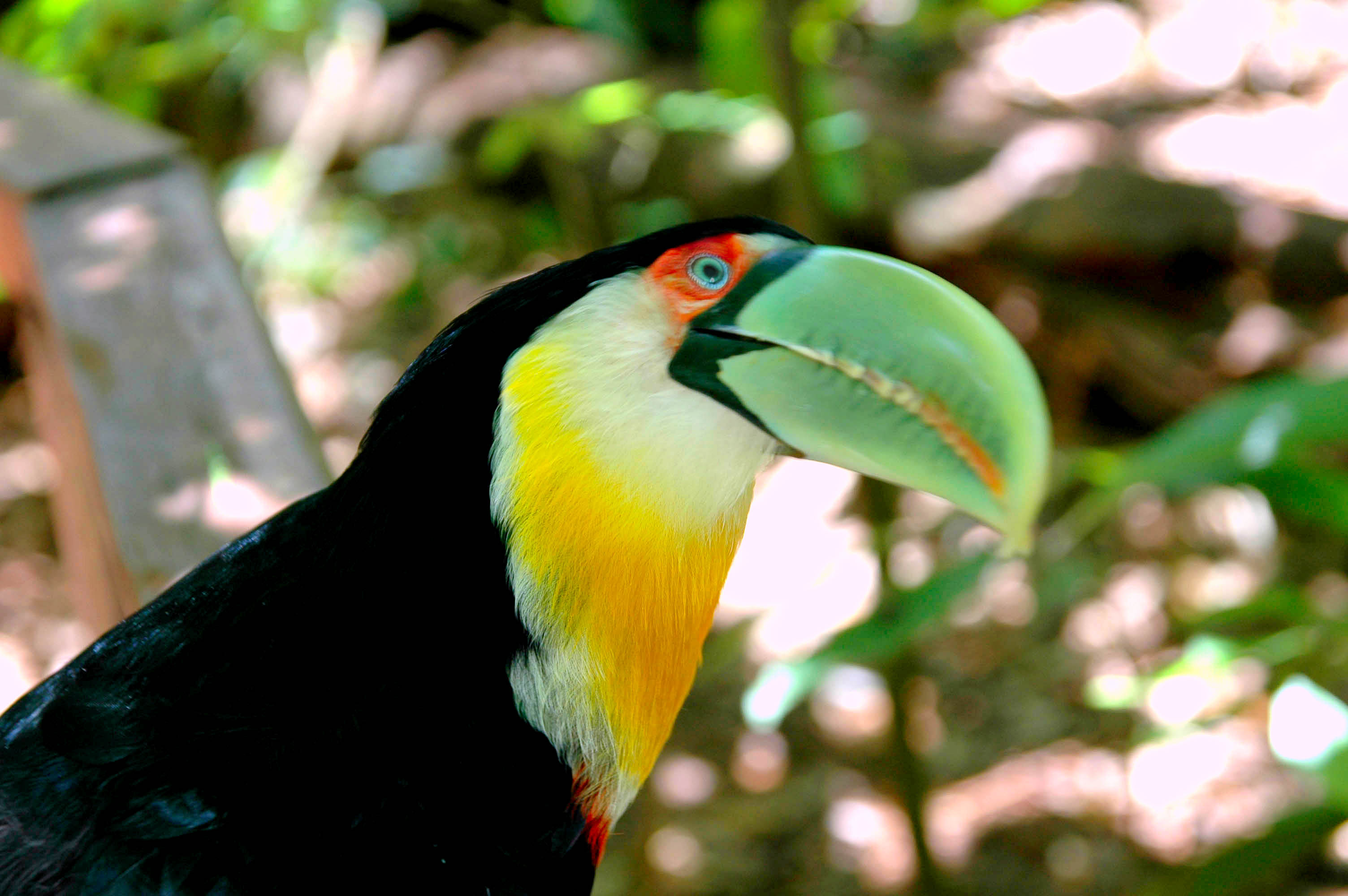 Neste espaço, você pode observar de perto o bico impecável dos tucanos. Eles costumam ser curiosos e chegam bem perto dos visitantes, permitindo observar detalhes que seriam impossíveis na natureza selvagem.
